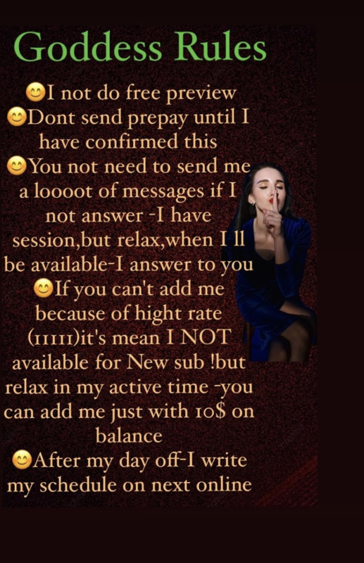 I will open to you a world of pleasure and enjoyment. You will be in my power and you will like it. I will enchant you with my divine beauty and voice. I adore pleasure, teasing and cumming. Let's give each other an unforgettable pleasure.